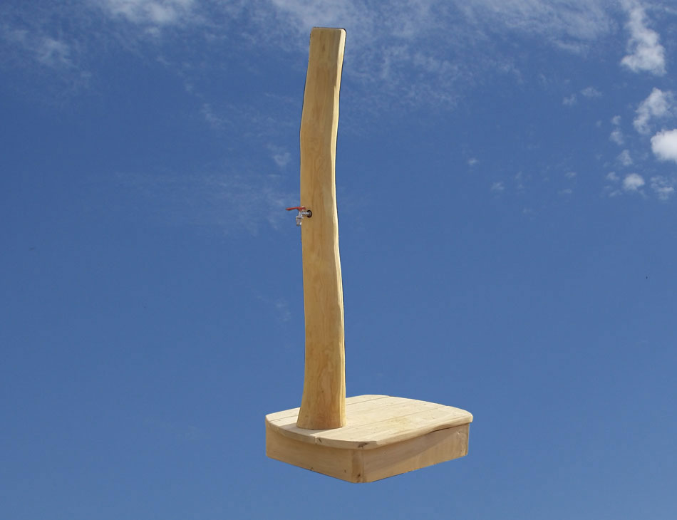 Holzsäule mit Kugelhahn.